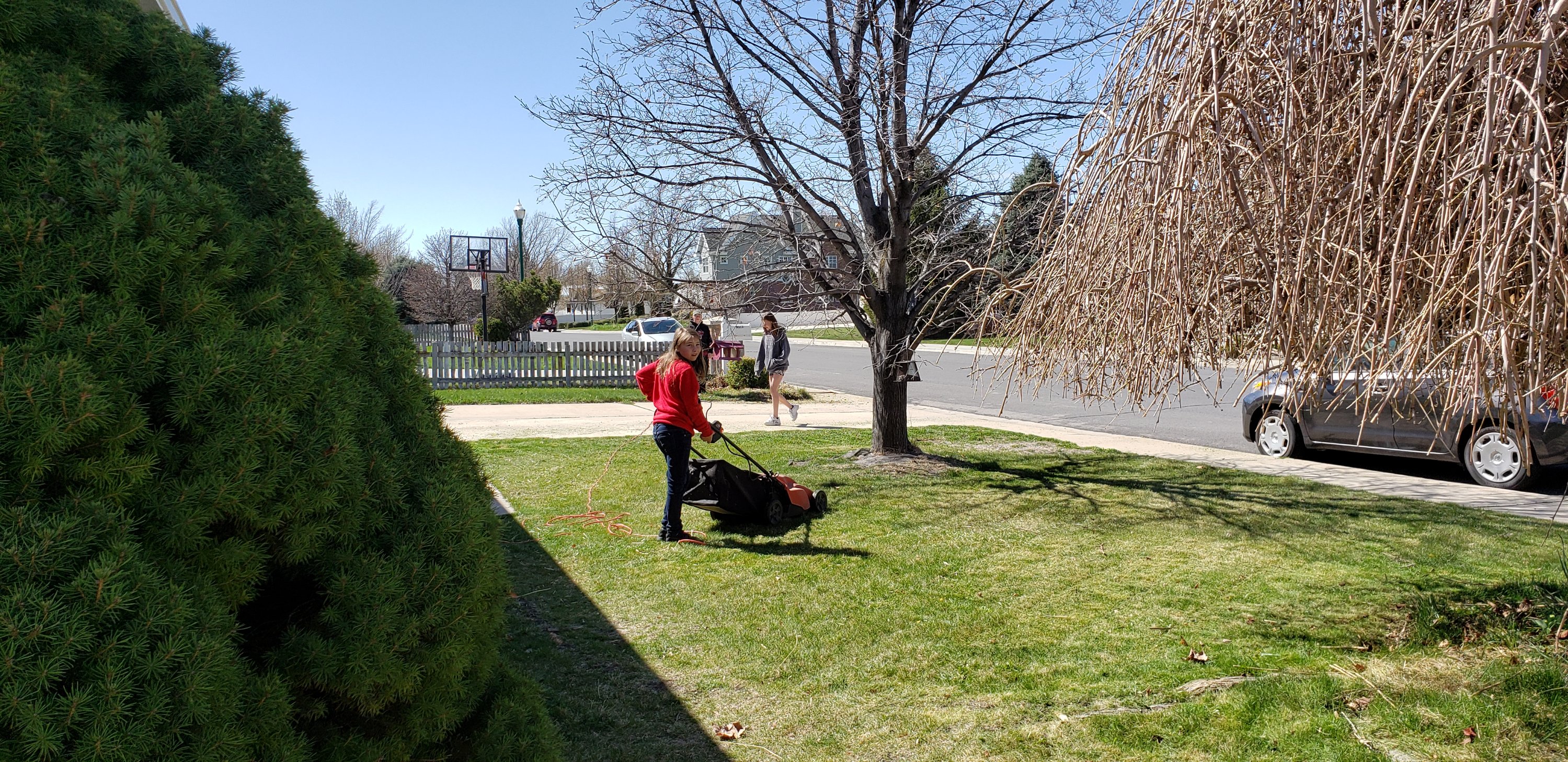 My son is so bored he decided to clean our yard. He got his sisters on board and since yesterday they’ve been mowing and clipping and clearing their little hearts out. They even blocked off a little garden area for themselves.