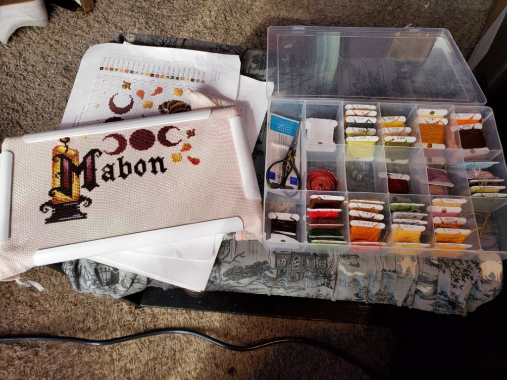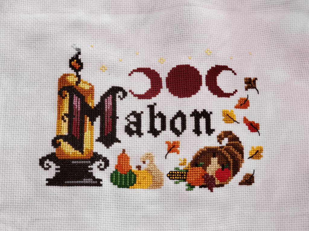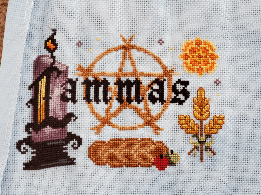 In other news, remember how I was starting a set of pagan sabbat themed cross stitches a couple months ago? Well, I’ve finished three more of those since I mentioned them. I started with Litha and now I’m about halfway through the Yule pattern. I should be far enough through the set to start framing and displaying them around Samhain. I’m excited.
