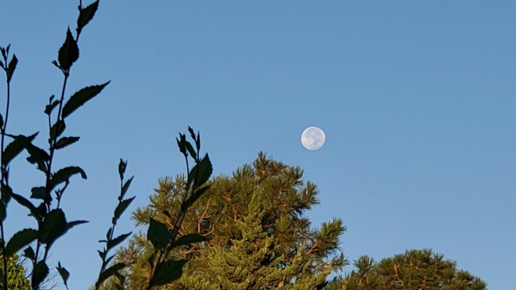 Anyway, I should stop rambling now and go work on this evening’s feast. If you celebrate Mabon, or harvest festivals under other names, I’d love to hear what you do. In the meantime, enjoy a picture of the moon I took this morning, hovering above some still very green trees. Merry meet, and I hope you all have much to look forward to this day.