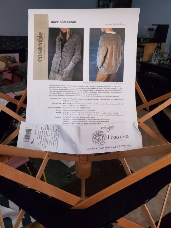 With autumn well underway, it’s also knitting season. I bought yarn a few weeks ago to make sweaters with and I’m just now winding it up to start the Dock and Cabin pattern. It looks complicated, with lots of cables and a sort of windowpane pattern on the back, but the pattern comes with nice clear charts so I should be okay.