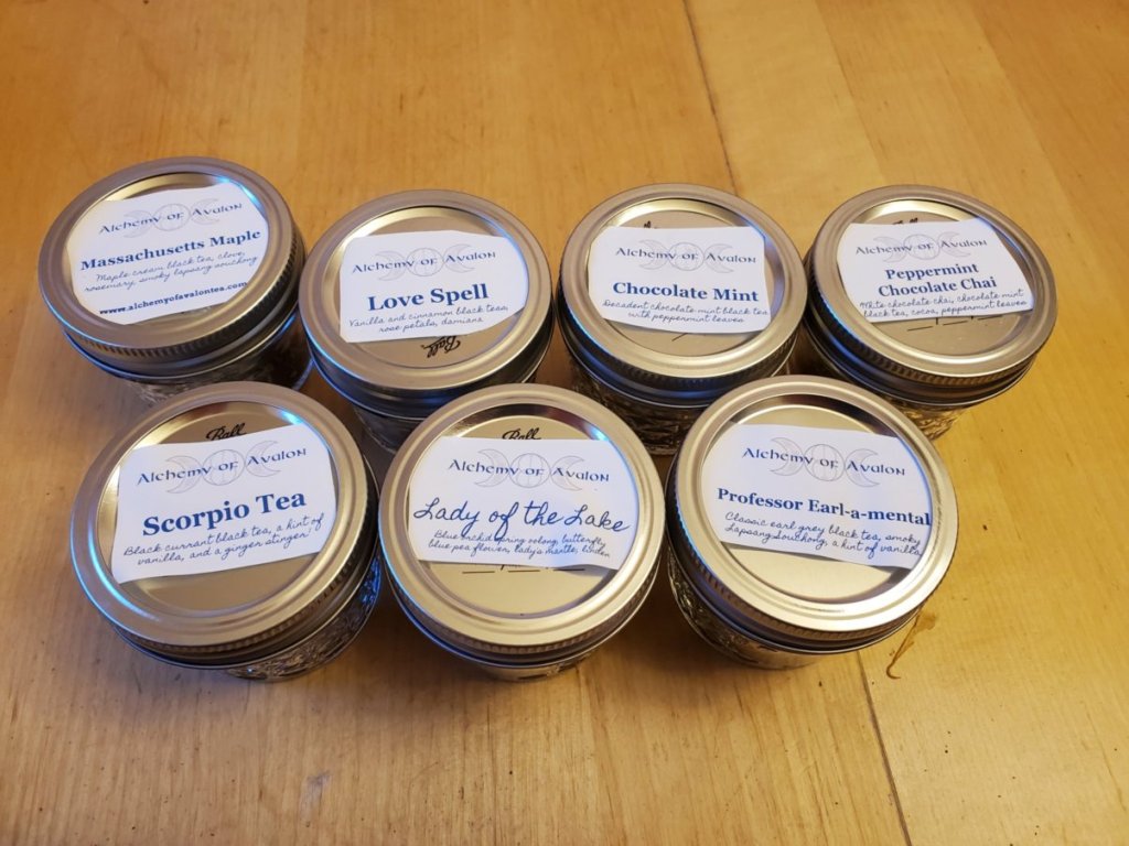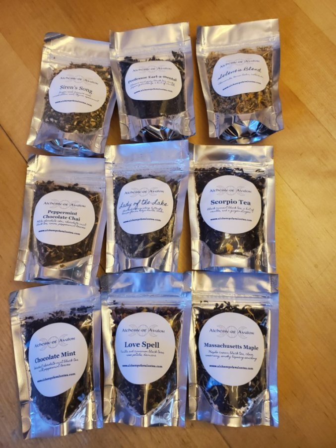 Alchemy of Avalon has a wide selection of green and black tea blends, as well as a few herbal teas. There are a few blends for specific healing or magical purposes, but I was more interested in trying a variety of flavors. I ordered a couple herbal blends, one magical looking oolong blend, and a whole lot of black tea blends. Out of nine samples, I thoroughly enjoyed most of them. As a total tea amateur, my opinion won’t count for much, but I’ll still give some brief details and thoughts on each tea.