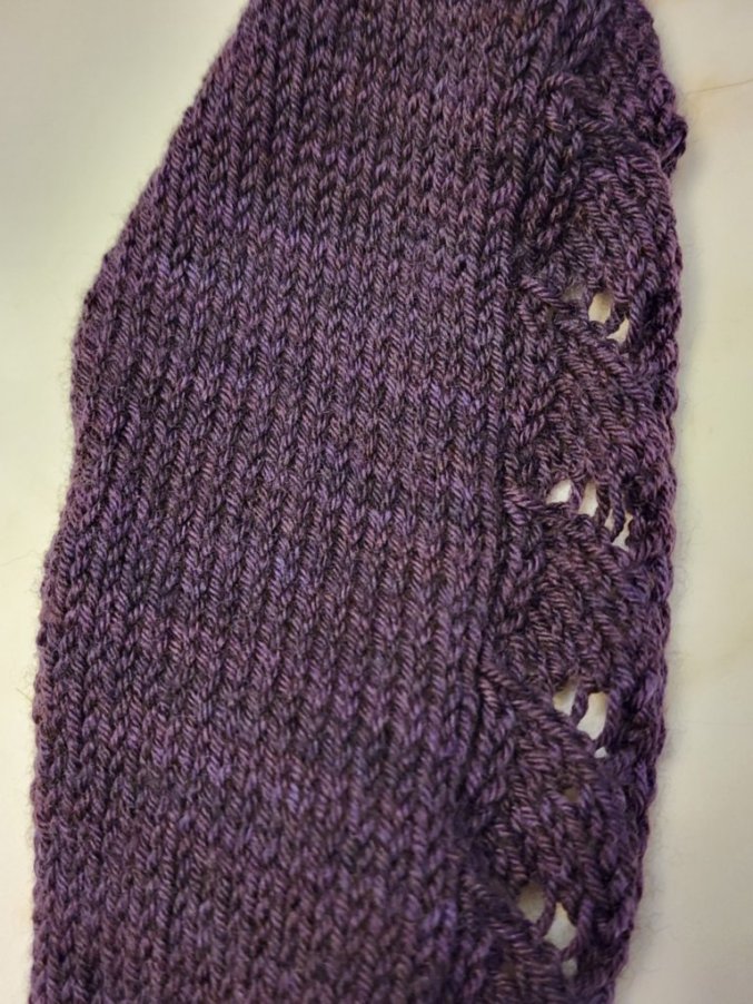 5. I knitted a thing. A little scarf. I need to buy a couple mats and block it properly before it will really look good, but I love the color and the yarn so I wanted to share anyway. The yarn is from Crow and Crescent, and this is the most perfectly dark purple I’ve ever seen in a yarn. (My pictures don’t do it justice–the pictures in her shop are darker and closer to the real color experience.) I’m dying to try more colors. Like most hand dyed yarn, it’s fairly expensive, but even so I’m tempted to try a sweater or shawl in this soft and beautifully dark stuff. The scarf pattern is the Gold Leaf Scarf by Simone Clark. It’s a pretty pattern and not too difficult. I liked the clever built-in i-cord edge, which should look really neat once the scarf is properly blocked.