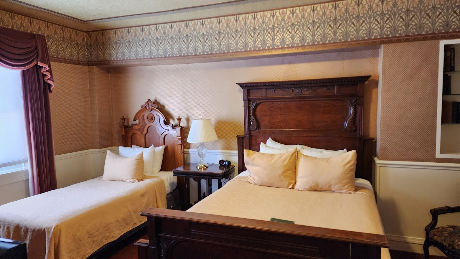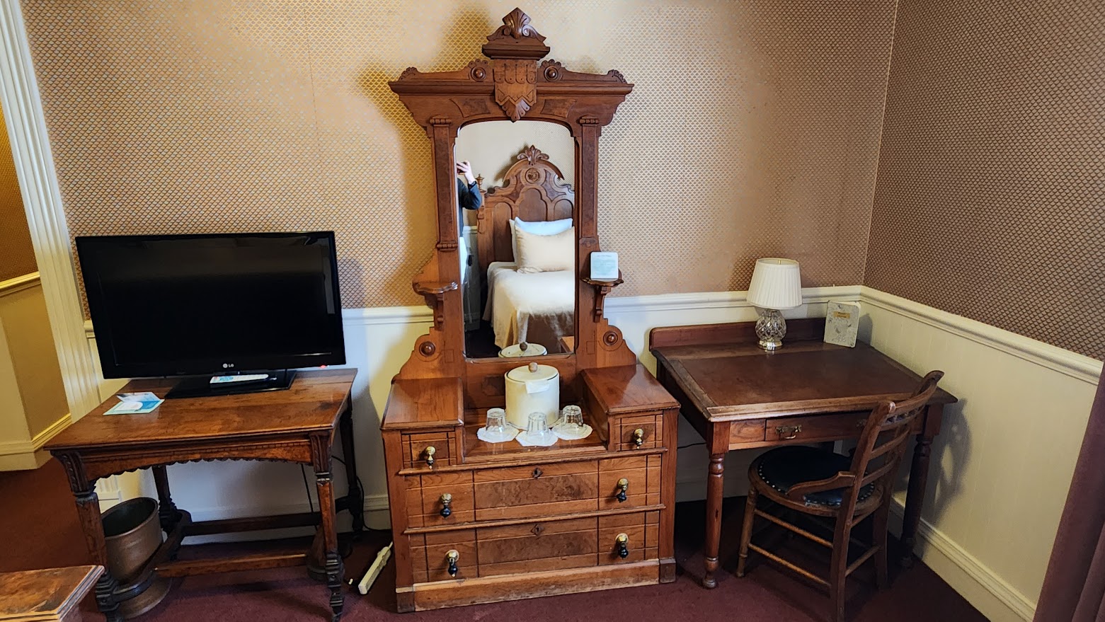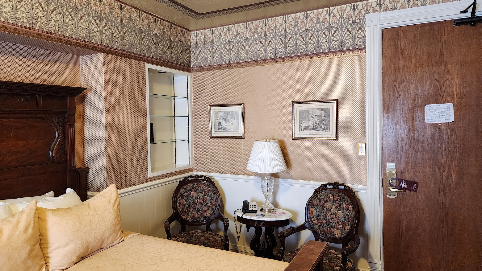 We stayed in the Historic Strater Hotel right on the historic main street. It was about the same price as the other hotels in town, and very close to both the sightseeing and the tournament venues. The Strater is not haunted (we asked) but it is beautiful. the actual building was built in the late 1800s and has seen much preservation and restoration work over the years. There are little historical displays set into the walls, and the rooms are all uniquely decorated with history-inspired wall paper and actual Victorian antique furniture. My daughter and I both loved the vibe and the staff was super friendly and used to guests wandering the halls, and one cleaner let us peek into some empty suites while we cleaned. Our room was all pastel and rose gold, with a lovely antique desk in the corner that I fell in love with.